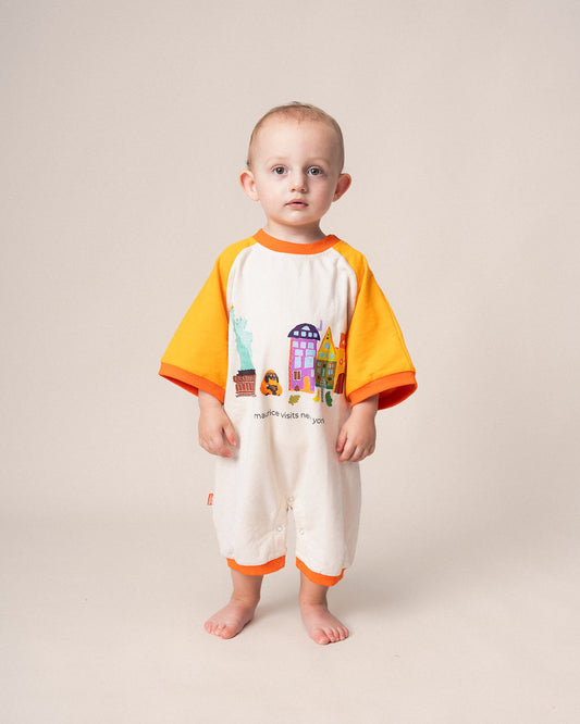 Regular price $51.75 AUDRegular priceUnit price / per$69.00 AUDSale price $51.75 AUDTake your little one on an imaginary adventure with this cute "Maurice Visits New York" romper. Featuring...